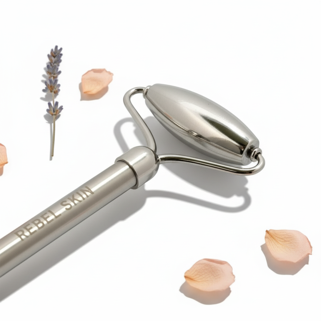 Le REBEL ROLLER est un outil de massage facial haut de gamme, fabriqué en acier inoxydable de qualité médicale et conçu pour les soins anti-âge quotidiens. Ce best-seller utilise un mouvement de roulement doux pour stimuler la circulation, optimiser l'absorption des produits et révéler un éclat naturel. Que vous soyez novice ou expert(e) en soins de la peau, le REBEL ROLLER est la façon la plus simple d'intégrer des soins du visage de qualité professionnelle à votre routine matinale ou vespérale, sans aucune technique particulière.
